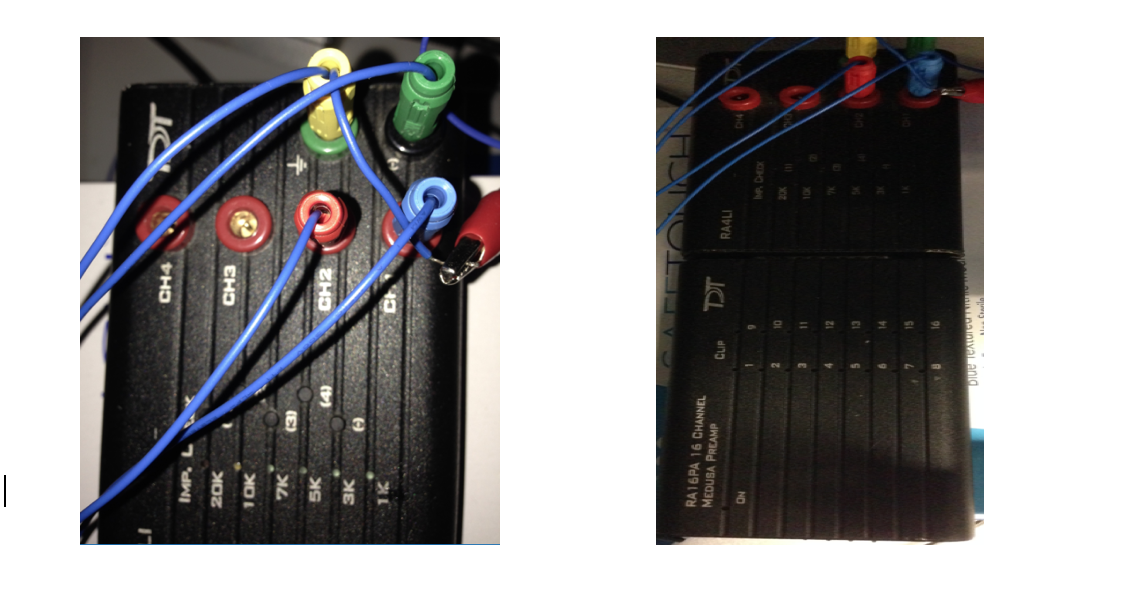 5. Check the impedance of CH1 (left brainstem) and CH2(right brainstem). When you press the CH1 and CH2 button, 1K should light constantly. If CH3 and CH4 are flicking, it is normal because they are not connected.